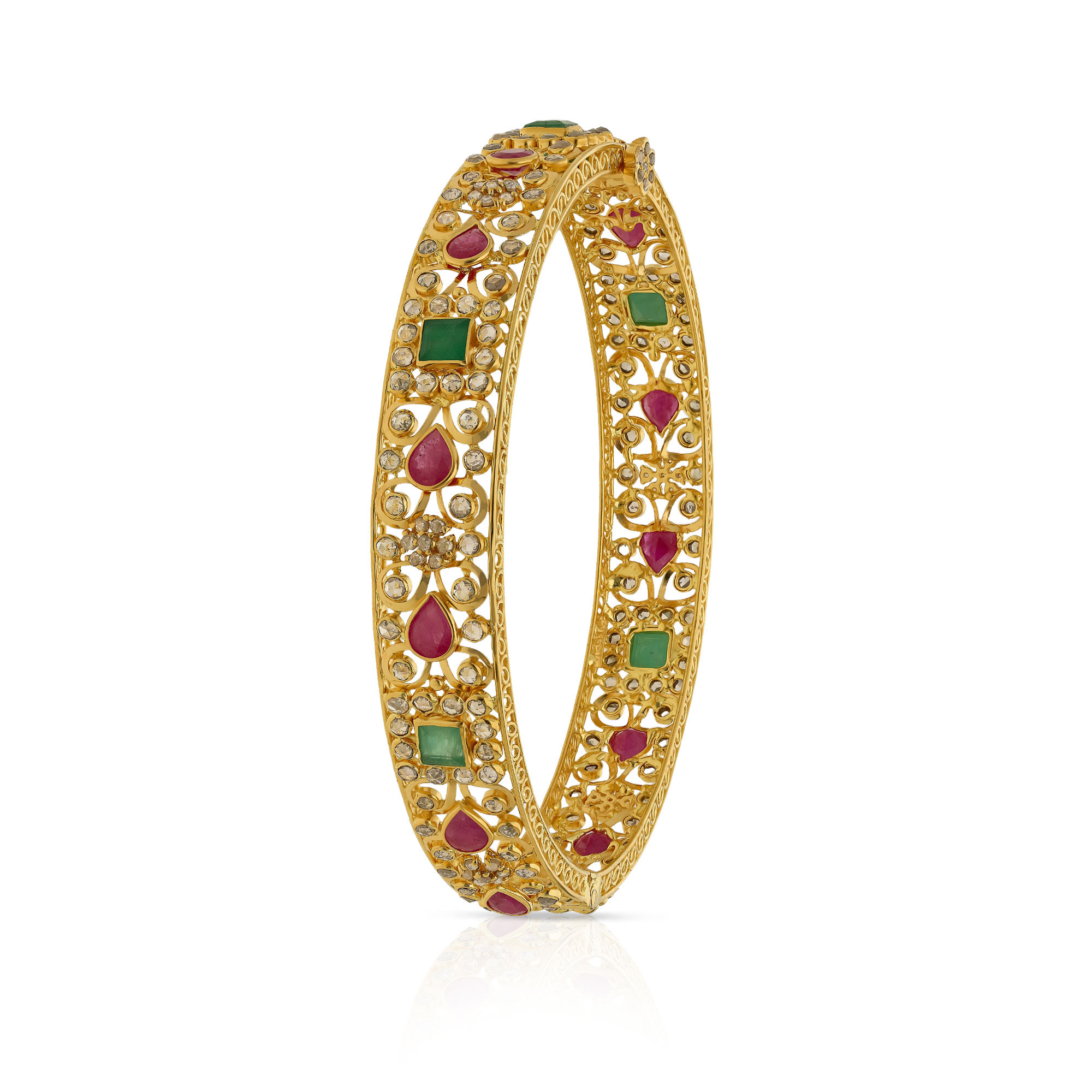 Exquisitely crafted in 22K gold the Era brand features uncut diamonds and precious stones, offering unmatched craftsmanship, purity and design excellence to jewellery lovers everywhere. With sparkling red rubies and green emeralds along with uncut diamonds, each and every Era uncut diamond jewellery is surely a masterpiece in itself as it not only enhances the face of the wearer but truly complements a traditional attire and highlights Indian heritage in the form of a jewellery. We at Malabar Gold & Diamonds have showcased a wide display of artistic uncut diamond jewellery under Era brand that redefines class, grace, tradition, art and culture.