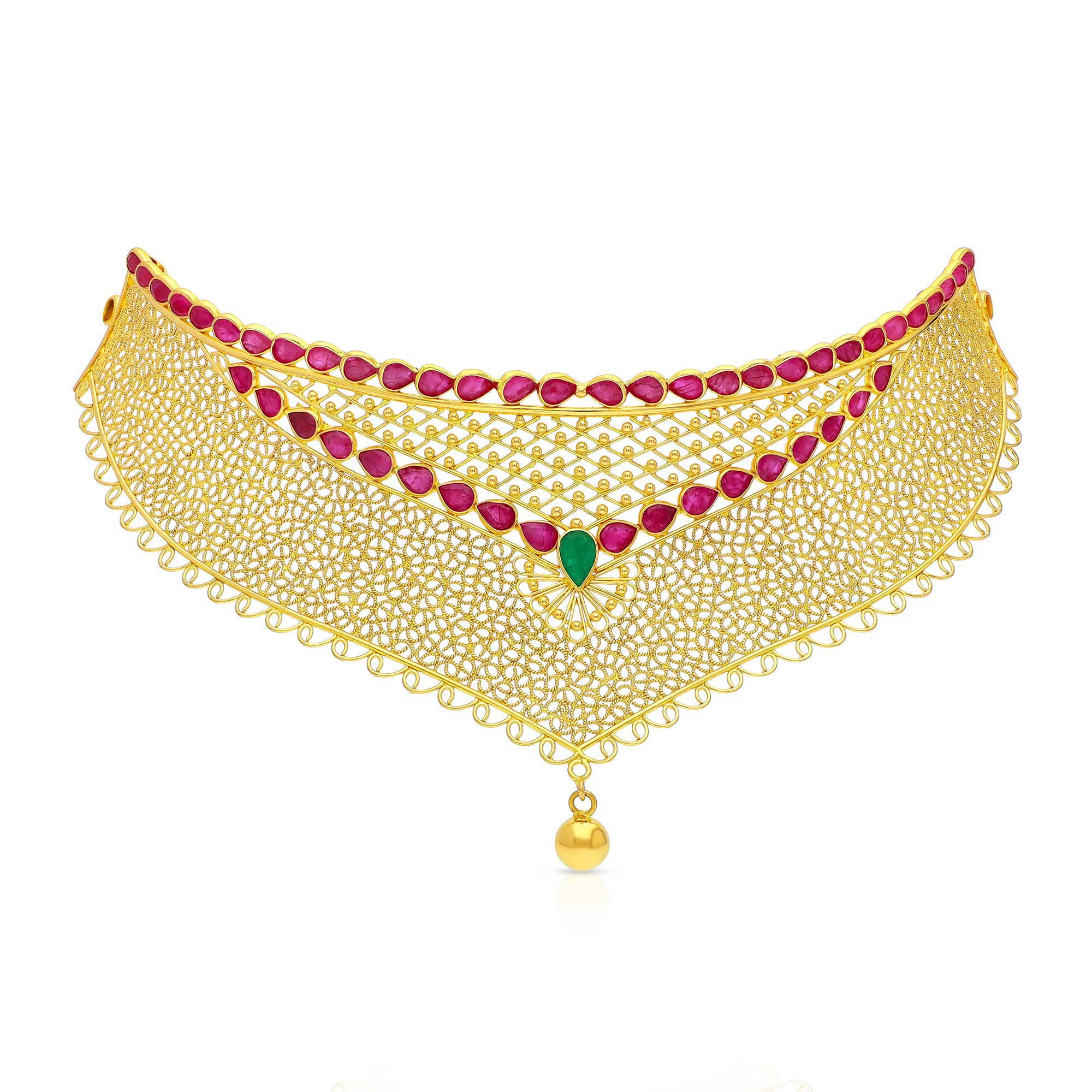 Precious “Precia” gem jewellery is brand introduced by Malabar Gold and Diamonds for gemstones lovers all over the world. We present a graceful collection of gem jewellery for the woman today featuring a bright assortment of alluring designs, incorporating precious gems like red ruby, green emerald, yellow sapphire and blue sapphire crafted in pure 22K gold.