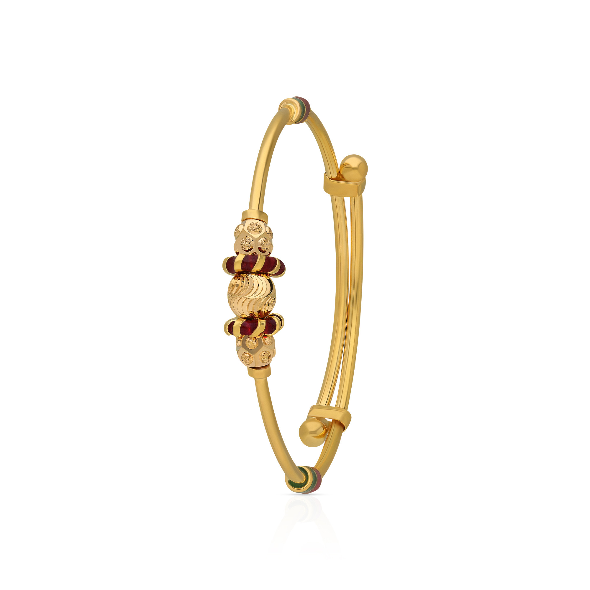 Children love the sparkle and glitter of jewellery more than adults and presumably a mother ‘s love to doll up their little ones with fancy and attractive jewels never fades away. So but obviously, kids jewellery has become quite popular over the years and thus we at Malabar Gold & Diamonds have revealed a wonderful range of jewellery for children that is available for all age groups. Our collection includes everything from earrings to bracelets and rings to pendants and features funky shapes to suit the taste of all kids. The trendy ornaments are beautifully crafted in “meenakari” designs adding a bright and positive appeal to the collection.