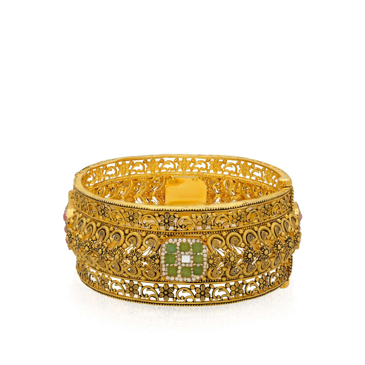 With machine made ornaments taking over the entire jewellery industry, quite obviously handmade jewellery have sure seemed to fade away. However, recently people are waking up to the unusual jewellery that is crafted by artisans who work with their hands and not under any electrical influence or machinery. We, at Malabar Gold & Diamonds have introduced our Ethnic brand with innovative hand crafted designer jewellery that features an amazing collection of assortment of jewellery pieces. It is an initiative by us to keep this tradition alive through our Ethnix Brand, which will be a reminder of olden times when each piece of jewellery, be it a small earring or an intricate necklace were all masterpieces crafted by hand.This intricately crafted collection features necklaces, pendants, earrings and bangles in authentic designs.